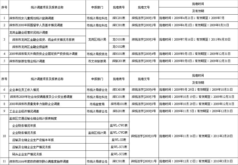 2009年深圳市统计调查项目目录